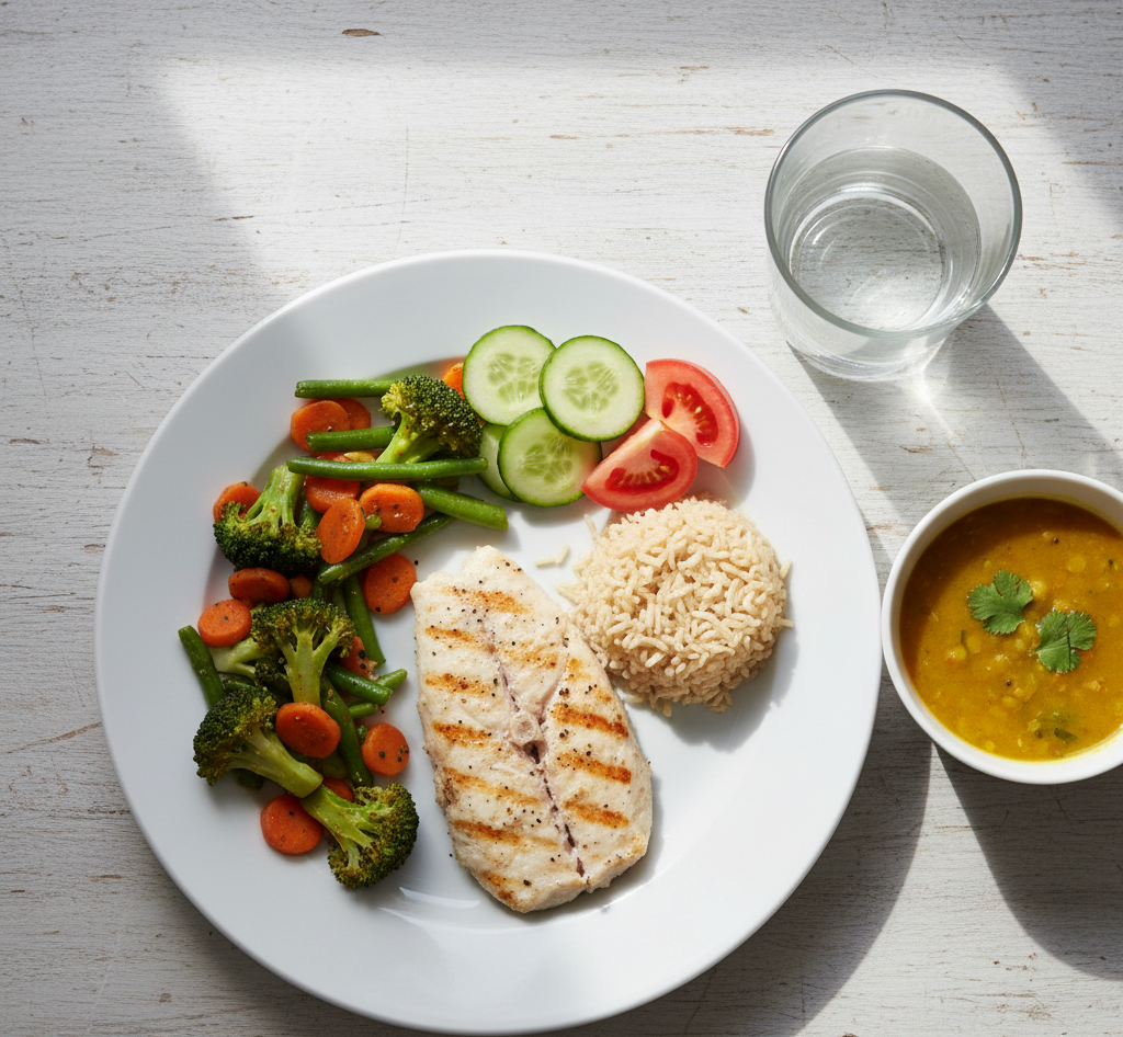 | Large dal portion only | Dal + side of mixed veg + ¼ cup dal | Keeps protein but adds micronutrients, supports a balanced plate |
