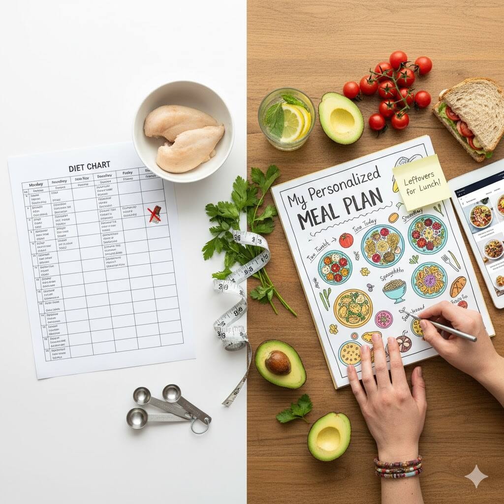 A diet chart focuses on your nutritional needs and eating habits, while a meal planner helps you follow a practical program you can use every day. One guides your choices, and the other organises them into a routine.