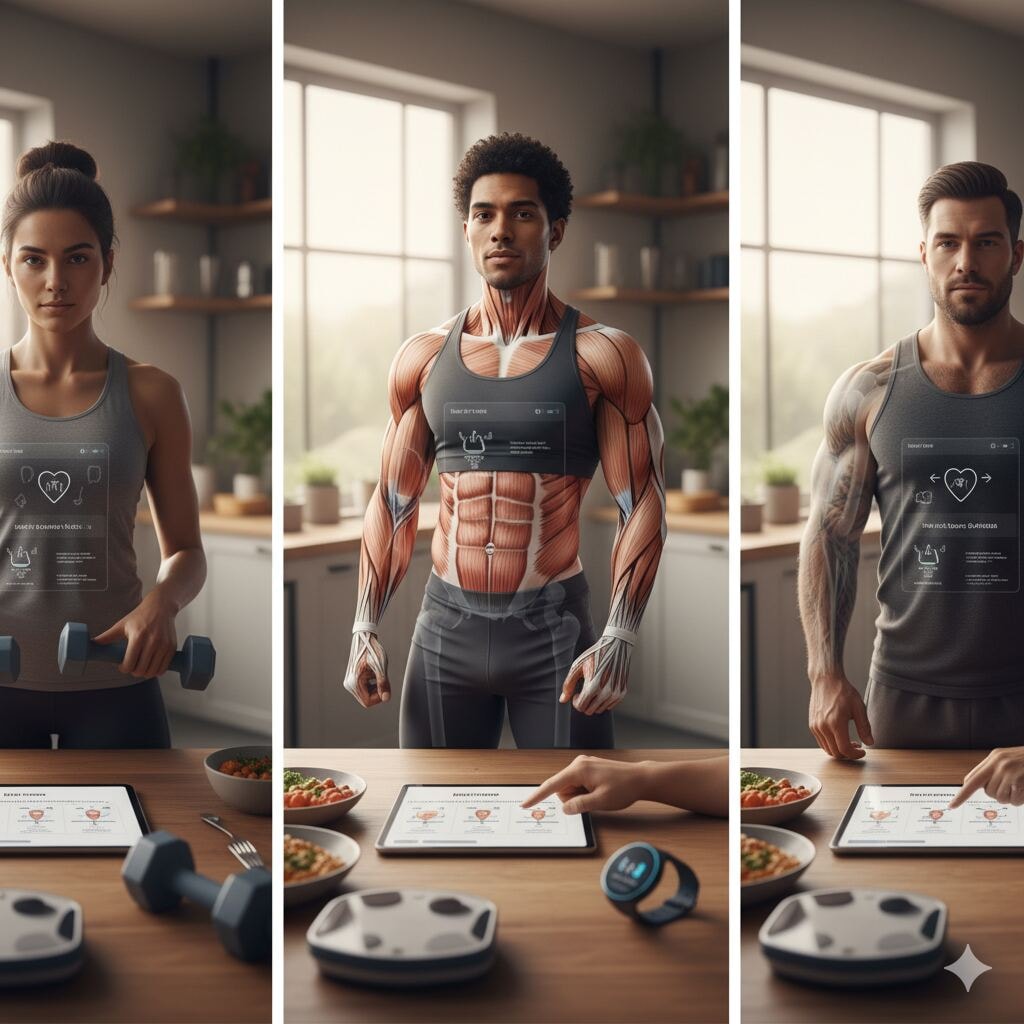Strength training paired with clean, protein-rich foods helps redefine composition without sudden calorie cuts.
