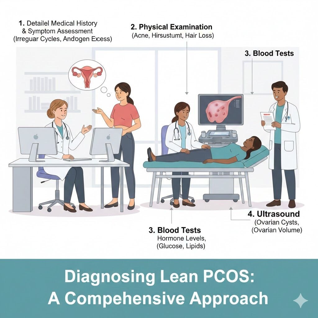 When insulin resistance and metabolic disorders are seen as part of lean PCOS rather than separate issues, testing and follow up become more precise. That clarity is what shapes how doctors approach diagnosis in lean patients and why the evaluation process needs careful attention.