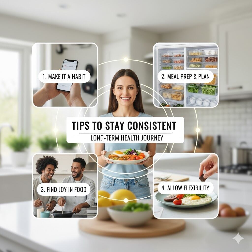 Once the right tool is in place, the real work shifts to staying consistent with your personalised food plan, especially on busy days and during long term health journeys. That is where practical consistency tips make the biggest difference.