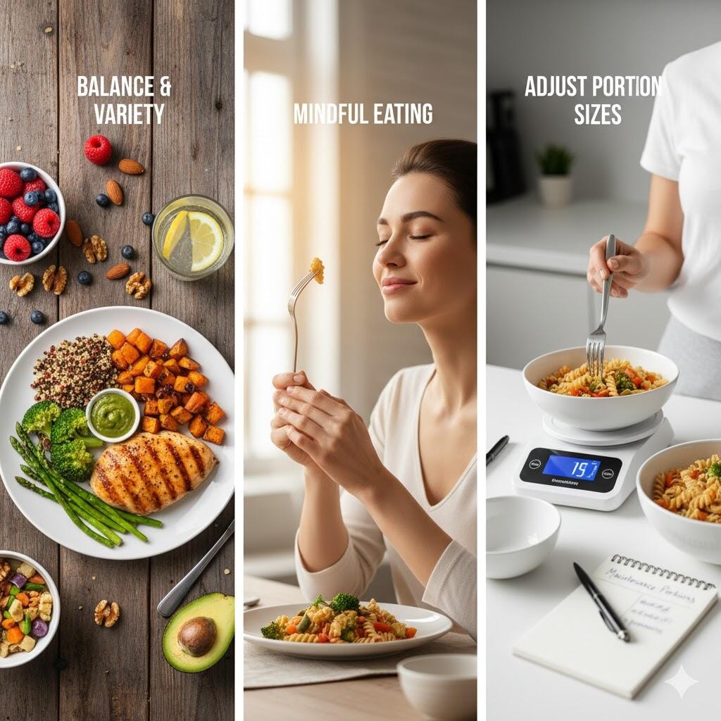 Review your meals, weight, and activity once a week. If weight creeps up slightly, trim portions or add a light evening walk. Regular reflection helps maintain awareness and keeps your progress steady without strict monitoring.